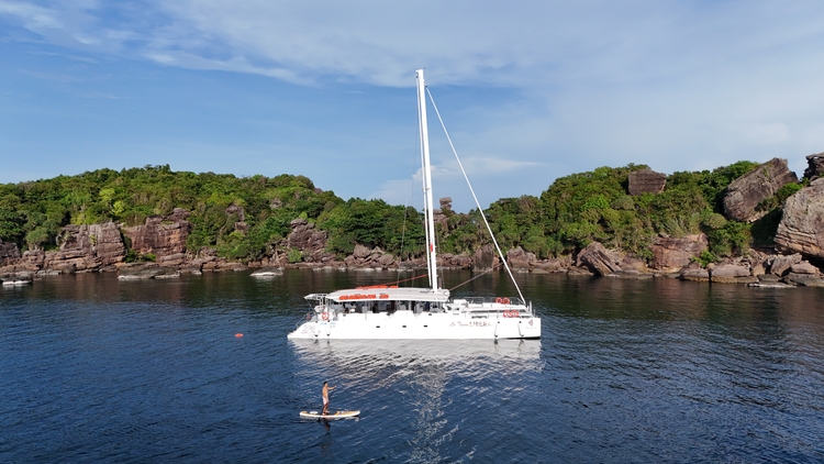 쌍동선 요트를 타고 푸꾸옥 푸른 바다를 항해하며, 선상바베큐 파티 및 스노쿨링을 즐겨보세요! 🐠