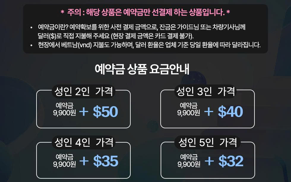 성인 9,900 원 (1인 30 USD 잔금 현장결제)