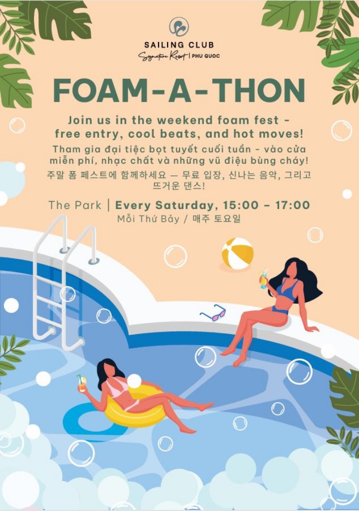 -매주 토요일 15:00 - 17:00 세일링 클럽 시그니쳐 리조트 The Park 에서 열리는 Foam Party 무료입장