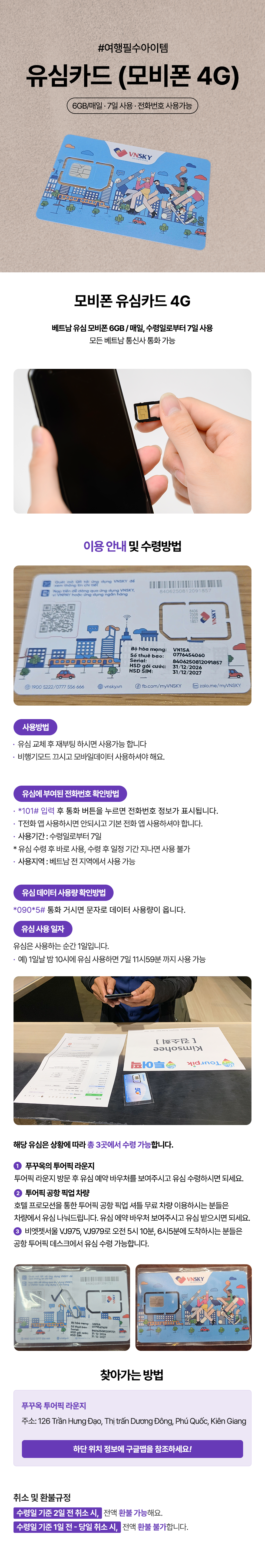 1) 즈엉동의 투어픽 라운지(킹콩마트 도보 5분거리)에서 수령 가능합니다