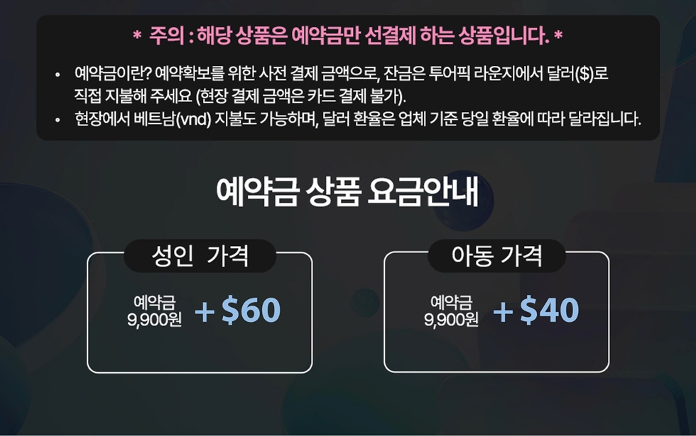 !해당 상품은 예약금만 결제하는 상품이며, 잔금은 현장에서 직접 결제해주세요.
