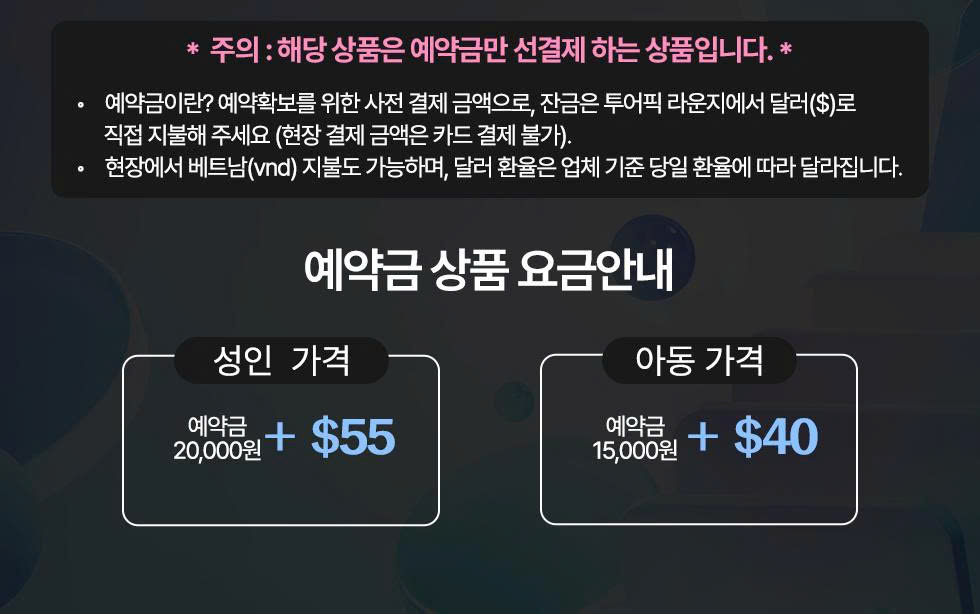 아동 15,000 원 (1인 40 USD 잔금 현장결제)