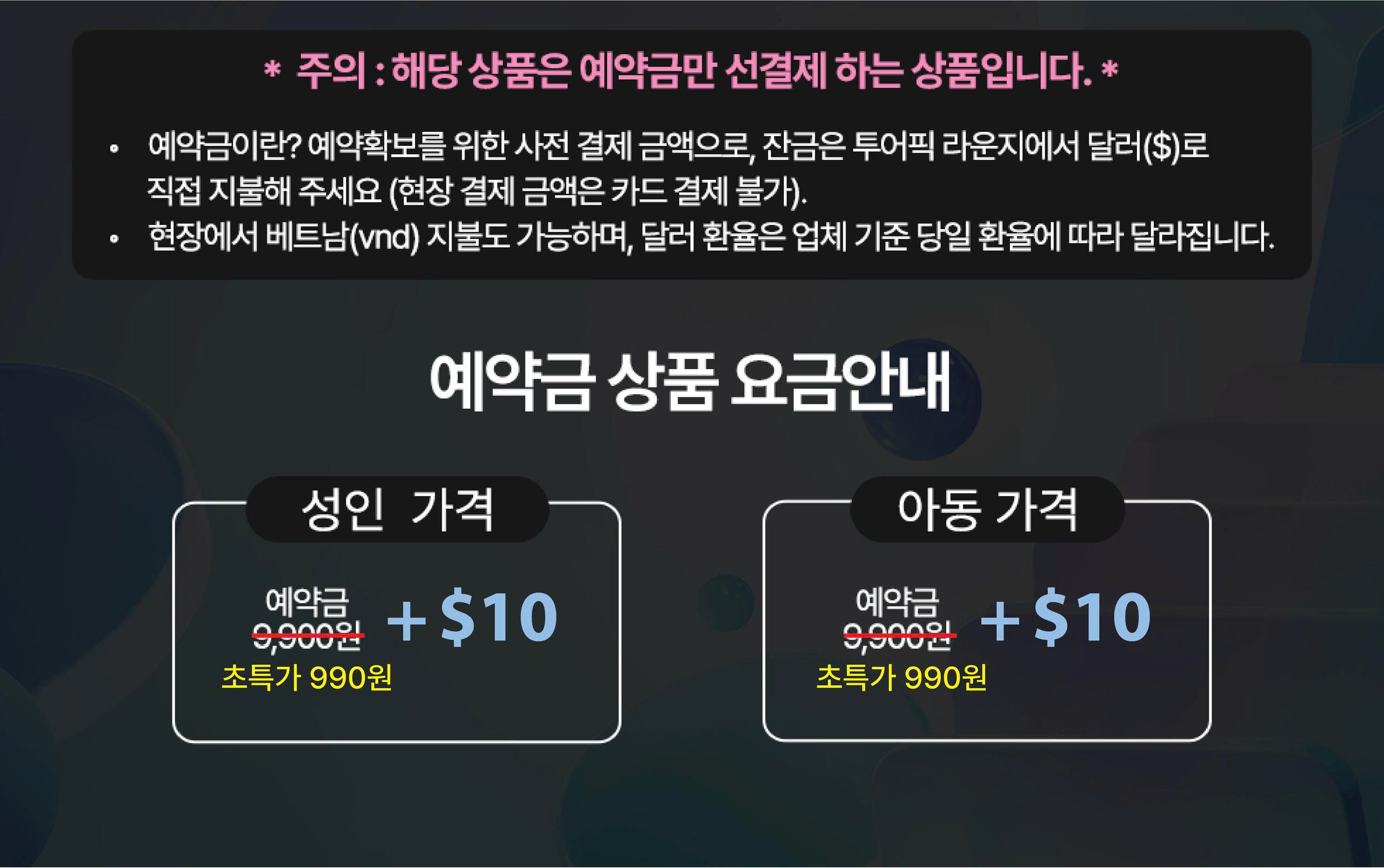 아동 990 원 (1인 10 USD 잔금 현장결제)