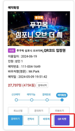 QR코드 생성 후 : 환불 불가, 날짜변경 불가