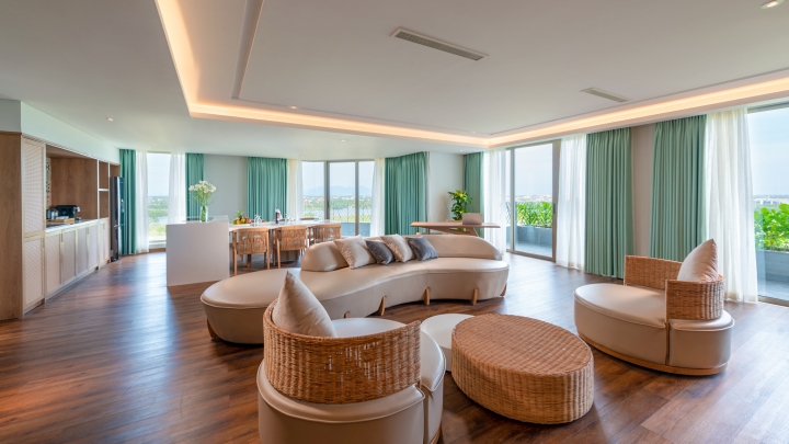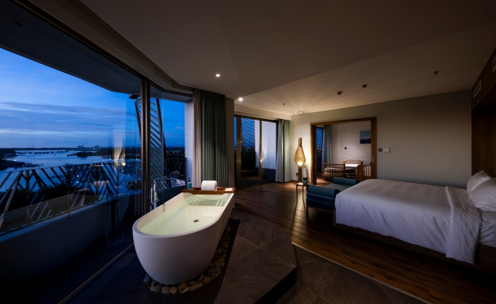 Scenic Relaxation 로비 층에 위치한 대형 인피니티 풀은 투본강(Thu Bon River)의 매혹적인 전경을 한눈에 담으며 수영을 즐길 수 있는 특별한 공간입니다. 강변의 평화로운 풍경과 맞닿은 수영장에서 잊지 못할 힐링의 순간을 경험해 보세요.