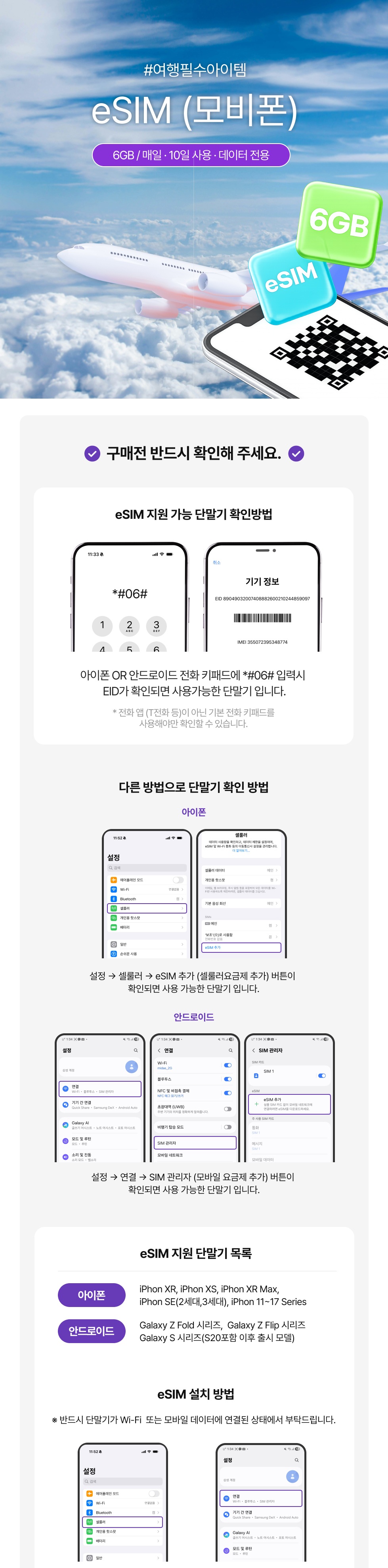 베트남 e-SIM 모비폰 6GB/매일, 10일 사용, 데이터 전용
