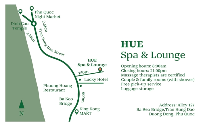 휴 스파(Hue Spa)는 푸꾸옥 즈엉동 지역에 있는 친환경 방갈로식 스파 입니다