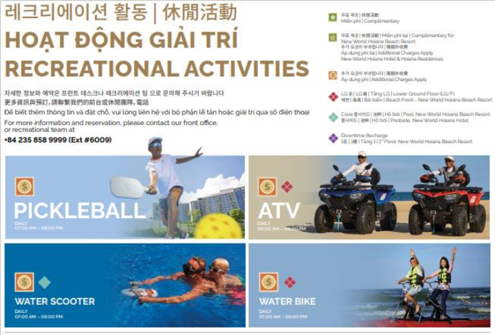 뉴월드 호이아나 비치 리조트 수영과 휴식을 즐길 수 있는 메인 풀, 스탠드업 패들 액티비티 공간