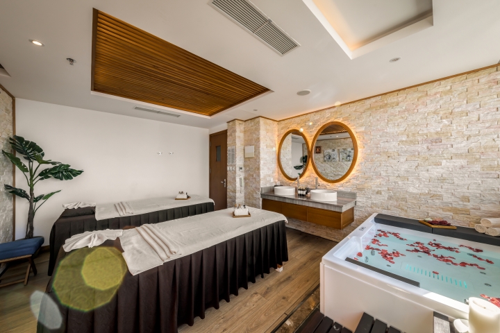 단순한 마사지를 넘어 전문적인 테라피스트들이 상주하며, 세련되고 차분한 인테리어로 입구에서부터 안정감을 줍니다. 프라이빗한 룸에서 고품격 스파 서비스를 받을 수 있어 투숙객 만족도가 높습니다