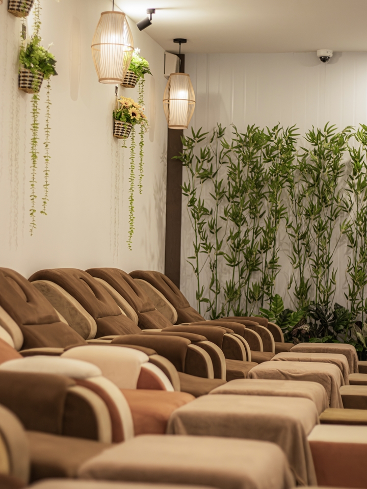 따뜻한 우드 인테리어와 은은한 에센셜 오일 향이 어우러져 입장하는 순간부터 편안하고 차분한 분위기를 선사합니다.